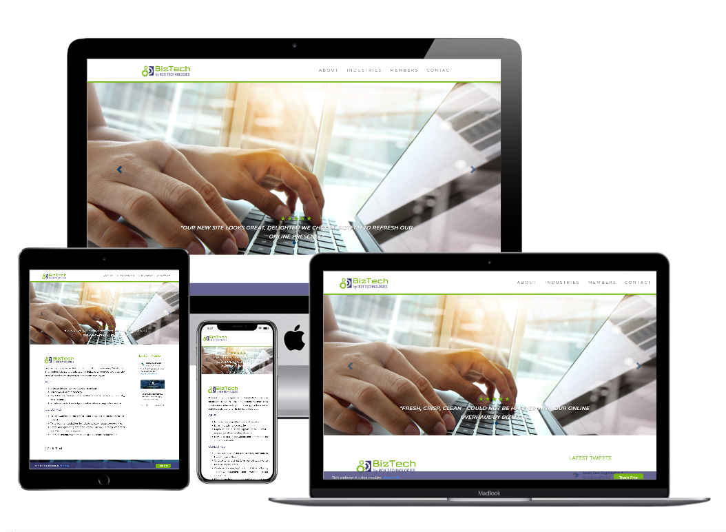 At BizTech, we offer a one stop shop for getting your business online. We aim to combine specific business requirements with modern technology to create an online offering that will leave a lasting first impression. An effective digital presence will inspire potential customers or clients to reach out and connect.